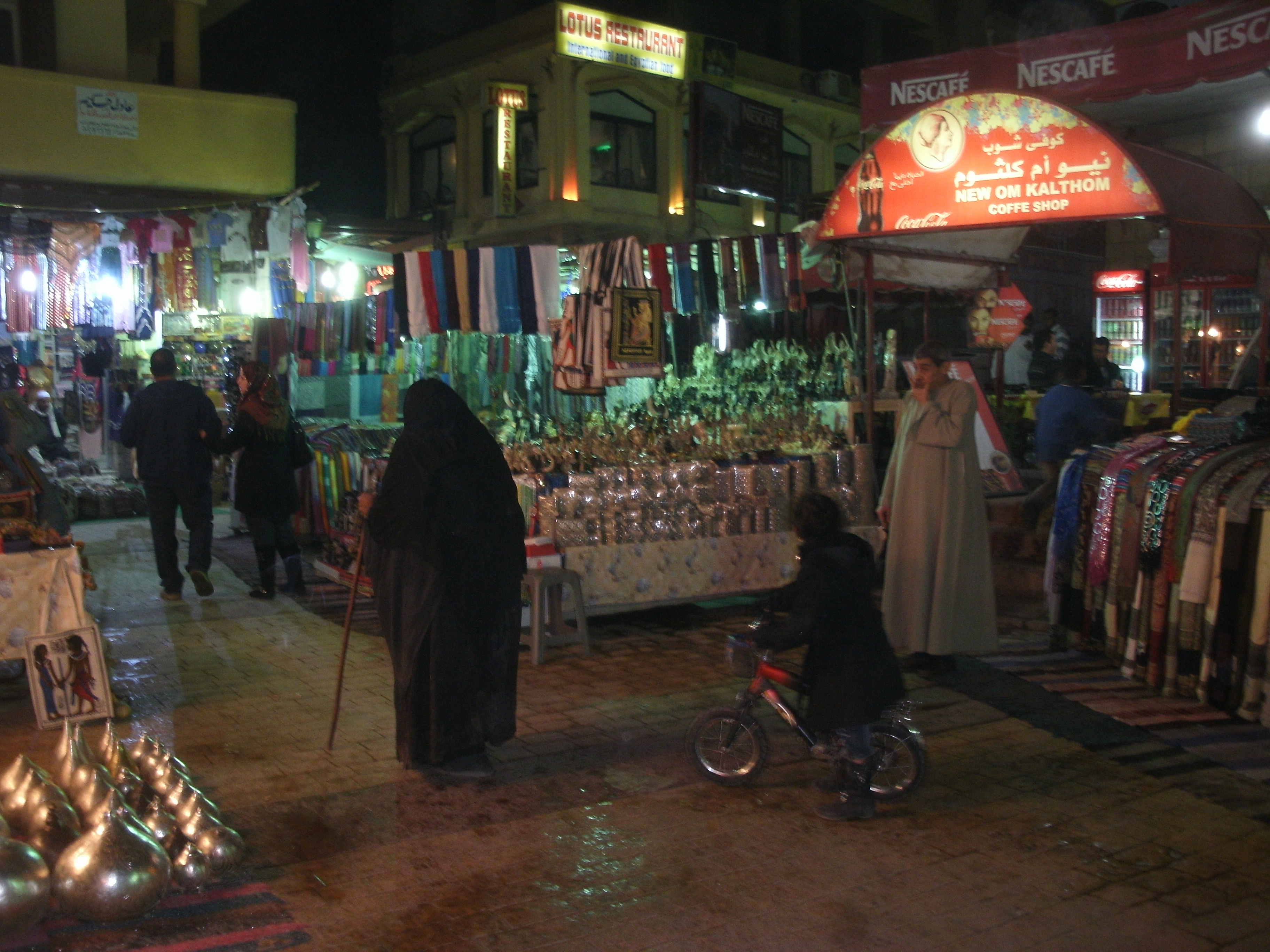 ולבסוף, ביקור בשוק של לוקסור הוא גם חוויה מעניינת, בגלל ההבדל העצום בין השוק המקומי לשוק התיירותי, לא רק במחירים אלא גם במראה הכללי. בעוד השוק המקומי נראה כמו שכונה שנלקחה מרומן של נג'יב מחפוז, היינו – מלוכלך, רועש ובוצי, אולם עמוס בסחורה טרייה (אנחנו קנינו שקית תמרים מתוקים כדבש), השוק התיירותי מרוצף, נקי, ממוסחר ויקר בהרבה – כמו שני עולמות שונים, למרות שהם נמצאים באותו הרחוב.