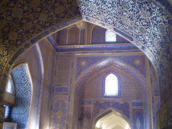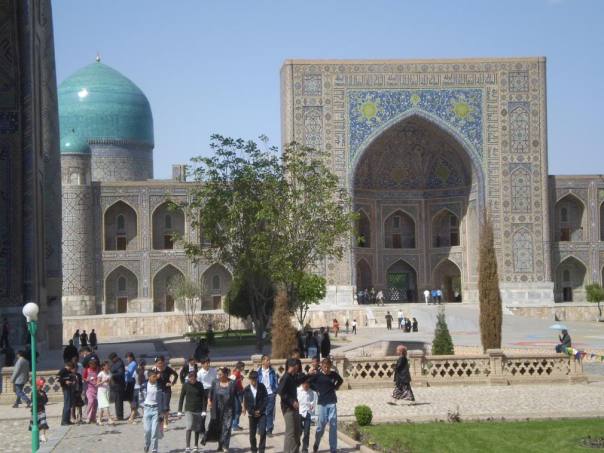 ביתם של נינה ובוריס נמצא במרחק הליכה (כעשרים דקות) מהעיר העתיקה של סמרקנד. בסמרקנד אין בדיוק עיר עתיקה, במובן של סימטאות מלאות באתרים, אלא יותר אוסף של אתרים בתוך רחובות רחבים ומודרניים. אבל האתרים הללו פשוט מרהיבים. סמרקנד, כבירתו האגדית של האמיר טימור מלאה במדרסות, מסגדים, מגדלים וקברות מפוארים- שהמראה שלהם פשוט עוצר נשימה. קחו למשל, את הרגיסטאן- אוסף של שלוש מדרסות מפוארות מהמאה ה-15- מלאות בדוכנים של עבודות יד אוזבקיות, שטיחים, מנורות וצעיפי משי דקיקים. הפנים המרהיב של מבני הרגיסטאן- וקווי המתאר החיצוניים המושלמים שלהם, מצדיקים כל סוּם וסוּם שמשלמים על מחיר הכניסה. הרגיסטאן ניצב לעיניך בכל הליכה ברחוב הראשי של סמרקנד, "רחוב הרגיסטאן", וההתבוננות הממושכת עליו היא מבין התענוגות שיש לעיר להציע. אתרים מרתקים נוספים הם מזיאוליאום גוּרי אמיר, קברו של האמיר טימור על רקע ההרים המושלגים, החורבות המונומנטליות של מסגד ביבי חאנים ושוק סיאב הרועש והצבעוני שמוכרים בו ירקות, פירות, גבינות, סלטים וממתקים מכל טוב אוזבקיסטן, וגם כיפות, צעיפים וכובעים בוכריים. קילומטר וחצי משם, בפאתי העיר העתיקה, ניתן למצוא אתרים ארכיאולוגיים בני אלפי שנים כמו אפרוסיאב, ואת מצפה הכוכבים העתיק של אולוג-בק, נכדו של טימור, פילוסוף, אסטרונום ומדען ששלט בסמרקנד בסוף המאה ה-15. הוא בנה את המדרסות של הרגיסטאן, והמסורת מספרת שלימד שם בעצמו מתמטיקה ופילוסופיה. האיסלאם הטורקי, הפרסי והמרכז אסייאתי החזיק באותה תקופה ברבים ממרכזי הידע העולמי, וסמרקנד היתה אחת מהם. העיר, ביחד עם אחותה, בוכארה, שימשה כביתם של משוררים, פילוסופים ומדענים כמו אבן סינא, אל-בירוני ורבים אחרים. אין כמו להסתובב ברחובות העתיקים, בין המבנים המפוארים, ולהרהר בהיסטוריה העשירה ובגדולי עולם שישבו ויצרו בעיר הזאת לפני מאות רבות של שנים.