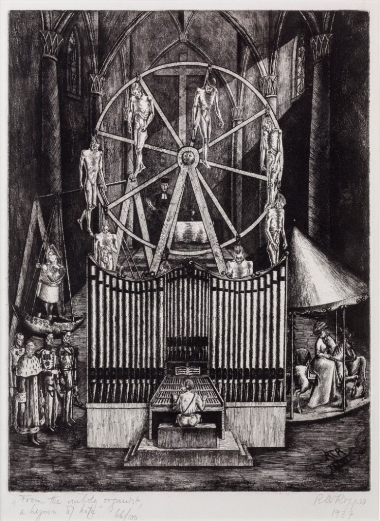 היטלר מנגן את המנון השנאה: קריקטורה אנטי-נאצית של רודולף-קארל פון ריפר