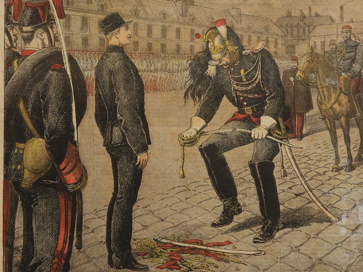 ב-15 בינואר 1895, מילאו המונים את החצר הגדולה של בית הספר הצבאי בפריז, כדי לצפות בטקס מיוחד במינו. קפטן יהודי בשם אלפרד דרייפוס, שהורשע באשמת ריגול, הובא על ידי סוהריו לחצר בכדי לבזותו בפומבי. סמל שבר את חרבו, תלש ממנו את דרגותיו והכריז שאינו ראוי לשאת נשק. ההמונים המשתוללים, שצעקו קריאות כנגד הבוגד דרייפוס ונגד היהודים בכלל, החניקו את קריאותיו של הנאשם, שהתעקש עד הרגע האחרון שהוא חף מפשע. כשנדחף החוצה, צעק "יחי צרפת" ו"יחי הצבא". איש לא האמין לו. מפריז, הובל לגורל אומלל, גרוע ממוות, בכלא קולוניאלי נידח שהיה ידוע כ"אי השדים".